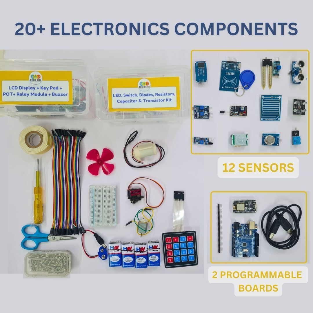 - With over 20 high-quality parts included, such as a programmable electronics board, USB cable, jumper cables, breadboard, resistors, battery, LEDs, servo motors, and various sensors (IR, rain, smoke, and light), the possibilities are endless. Let your imagination run wild as you explore and experiment with different sensor inputs and outputs.